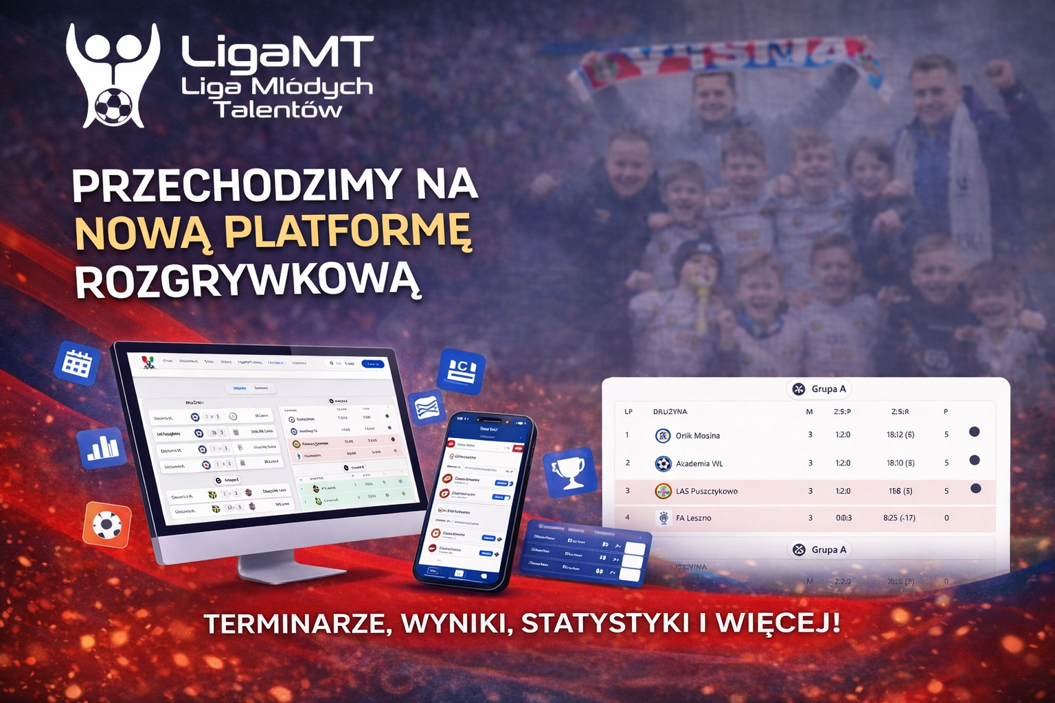 Nowa strona rozgrywek została przygotowana po to, aby dostęp do najważniejszych informacji był szybszy, prostszy i bardziej przejrzysty. W jednym miejscu będzie można znaleźć wszystko, co najważniejsze: harmonogramy meczów, wyniki spotkań, tabele, statystyki, informacje o drużynach oraz aktualności związane z rozgrywkami.
